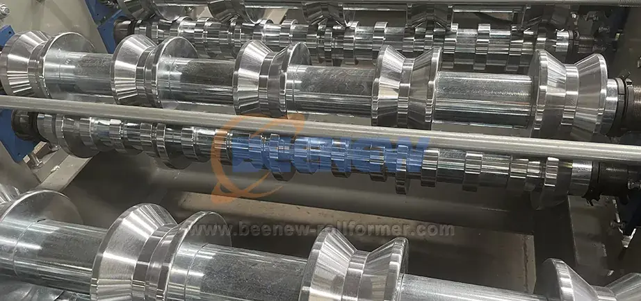 The roof panel machine from Beenew integrates advanced design and production techniques, featuring forming rollers with a φ65mm diameter. This specification ensures that the equipment's load capacity and processing demands are adequately met, allowing for stable performance and exceptional output quality. The rollers are constructed from high-quality 45# steel, which offers remarkable strength, flexibility, and toughness, making them highly resistant to wear after precision machining. This ensures a longer service life and contributes to improved machine efficiency, providing consistently precise results across different industrial roof panel forming applications.