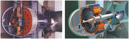The bulb turbine is a reaction turbine of Kaplan type which is used for extremely low heads. The characteristic feature of this turbine is that the turbine components as well as the generator are housed inside a bulb, from which the name is developed. The main difference from the Kaplan turbine is that the water flows in a mixed axial-radial direction into the guide vane cascade and not through a scroll casing. The guide vane spindles are normally inclined to 600 in relation to the turbine shaft and thus results in a conical guide vane cascade contrary to other types of turbines. The runner of a bulb turbine may have different numbers of blades depending on the head and water flow. The bulb turbines have higher full-load efficiency and higher flow capacity as compared to Kaplan turbine. It has a relatively lower construction cost. The bulb turbines can be utilized to tap electrical power from the fast flowing rivers on the hills.The Bulb Tubular turbine is the best selection for exploitation of tidal power and hydraulic power with extremely low water head and extremely large discharge. It has large discharge, high specific speed and high efficiency, and needs less excavation in civil works.